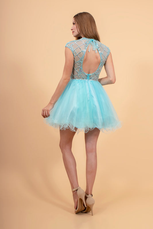 Sheer Bodice V-Neck Glitter Mesh Homecoming Dress