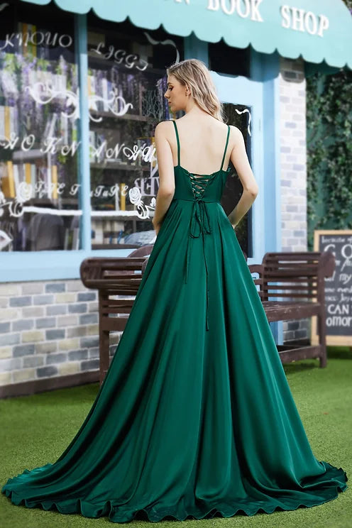 3D Floral Applique V-Neck Spaghetti Strap Mesh Prom Dress