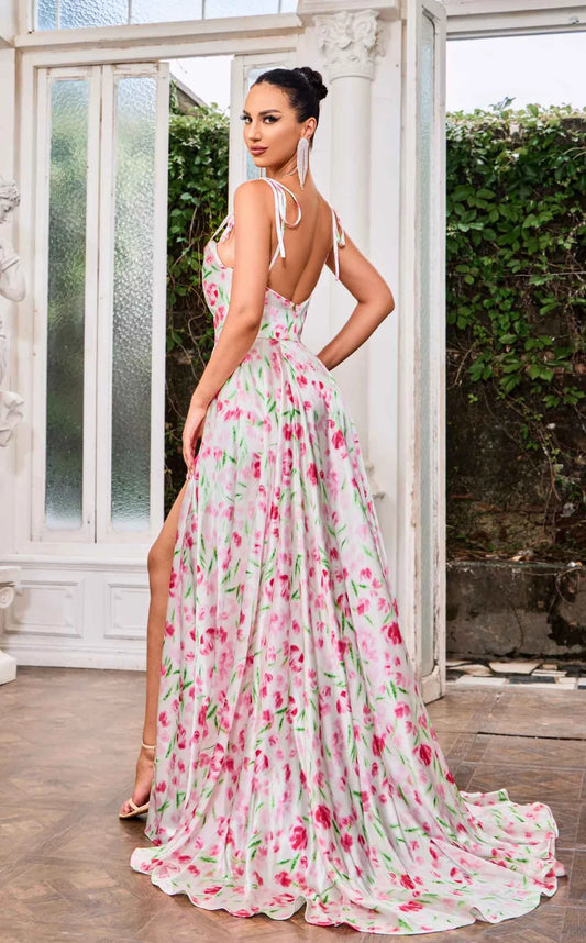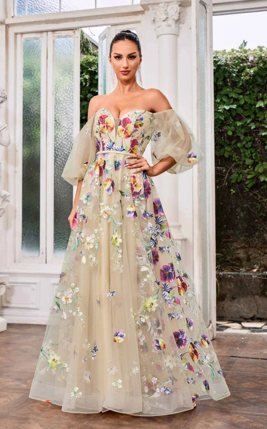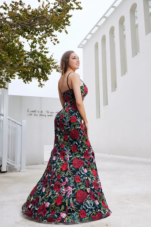 Multicolor Floral A-Line Gown