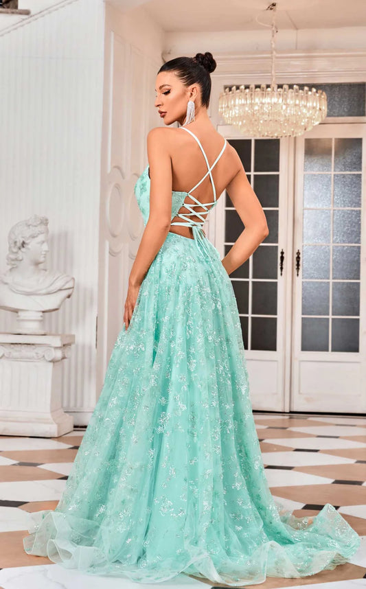 Embellished A-Line Tulle Gown