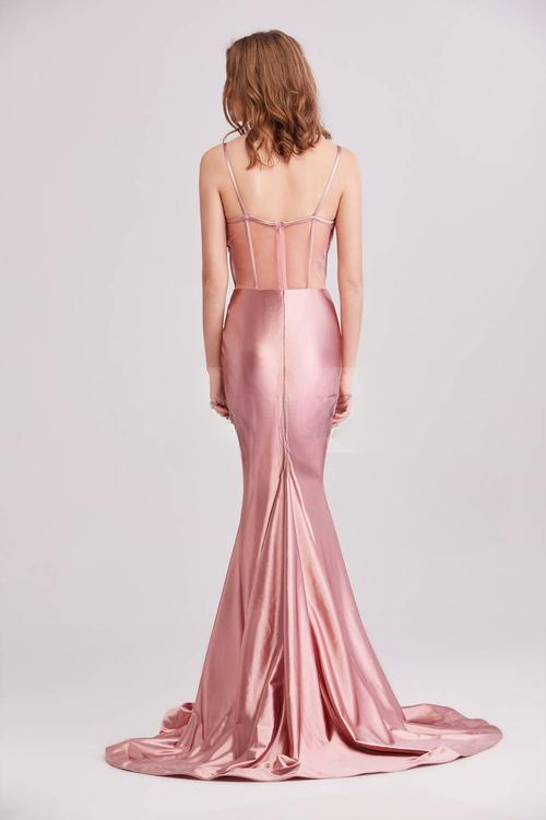 Jewel Glitter Sheer Bodice Mesh Mermaid Long Dress