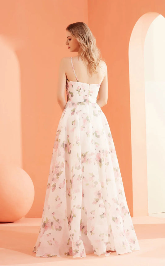 3-D Heart Applique Bead Layered Skirt Mesh A-line Long Dress