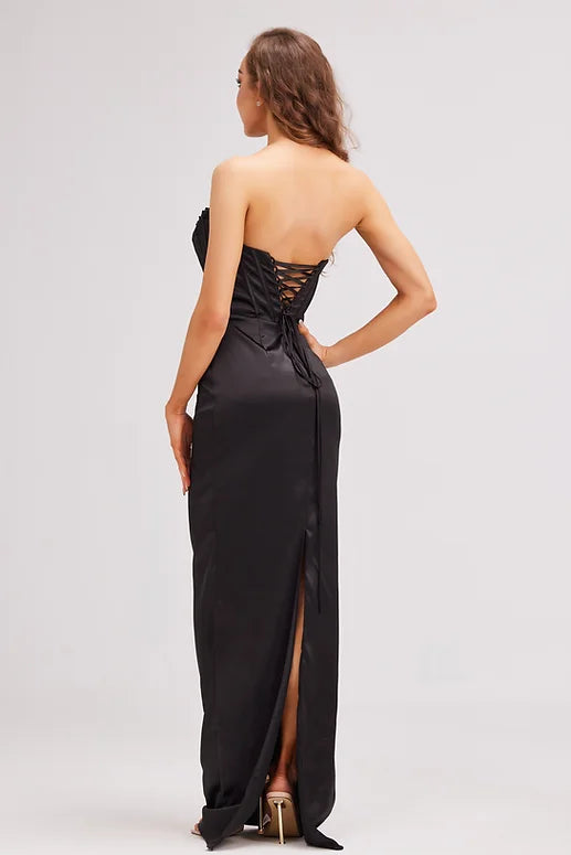 Embroidery Sheer Corset Bodice Trumpet Mesh Long Dress