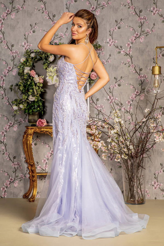 Straight Across Sequin Embellished Mesh Mermaid Dress w/ Slit