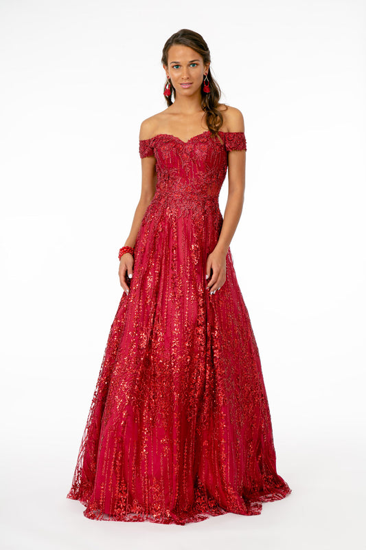 Embroidered Bodice Sequin and Glitter Embellished A-Line Dress