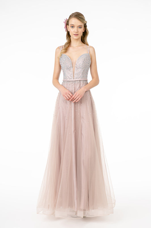 Sparkling Embellished Plunging Neck Long Dress from GLS by Gloria