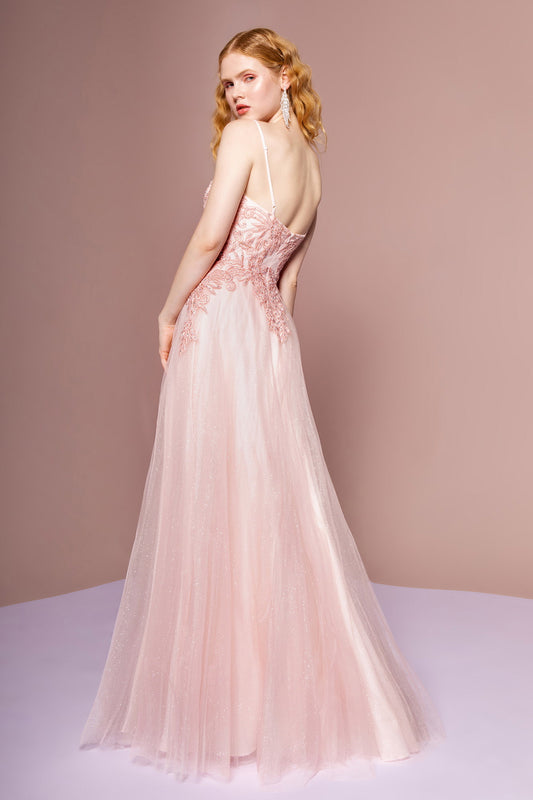 Embroidered Bodice and Mesh Glitter Floor Length Skirt