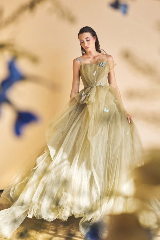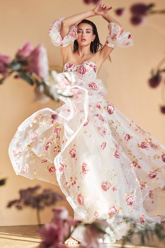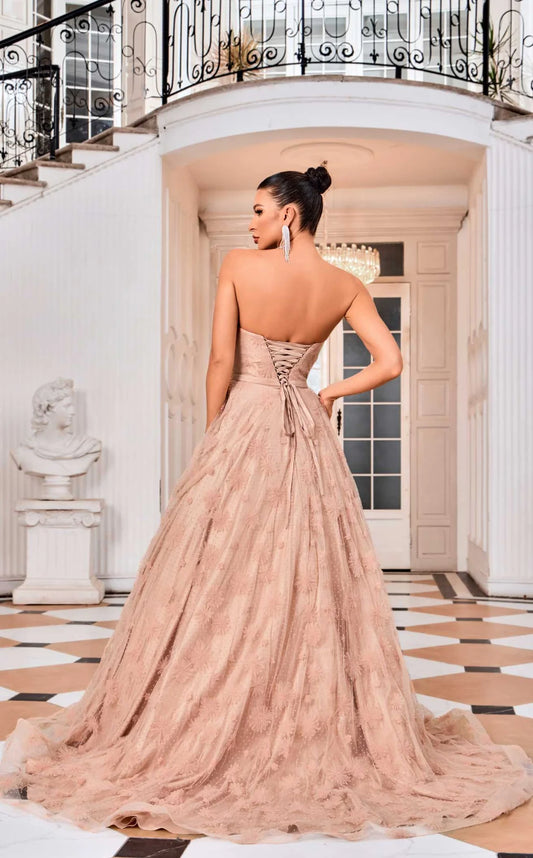 Rose-Tinted Glass Beaded Gown With Matching Gloves