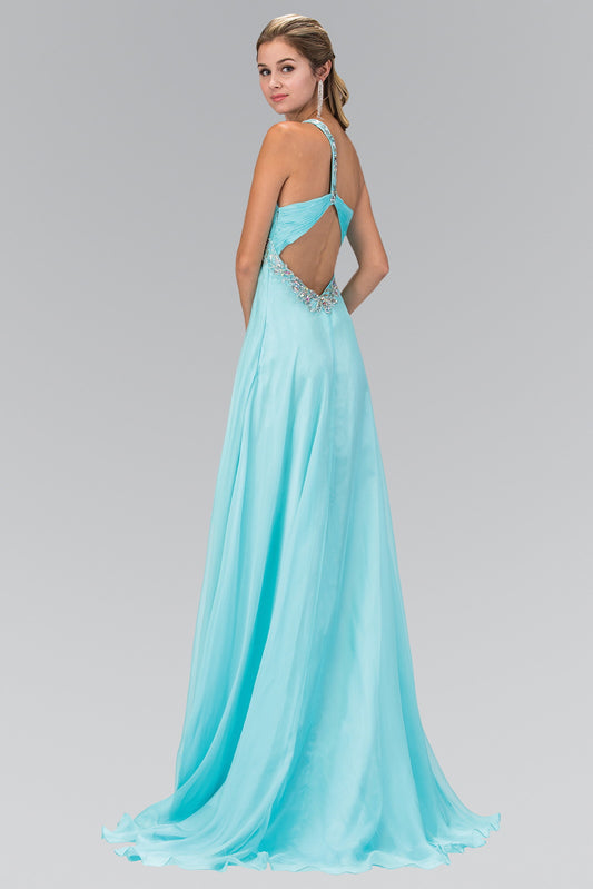 One Shoulder Chiffon Long Dress Accented with Jewel