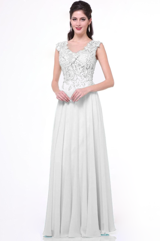 A-Line Dress with Chiffon Skirt and Beade V-Neckline Bodice