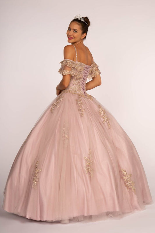 Off-the-Shoulder Embroidered Mesh Ball Gown