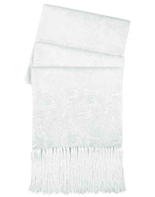 Formal tuxedo scarves add that something extra to your formal wear ensemble. Consider wearing either a white tuxedo scarf or black tuxedo scarf to distinguish yourself from the crowd. Although you do not see formal scarves worn too frequently at weddings, you will often see formal scarves worn at proms and many black tie events. In regards to quality, most tuxedo store owners will agree that the Cardi tuxedo scarves are considered the best formal scarves in the tuxedo industry. If you are already going all out with the tuxedo scarf, you also may want to consider top hats, formal canes, formal gloves, and tuxedo handkerchiefs.