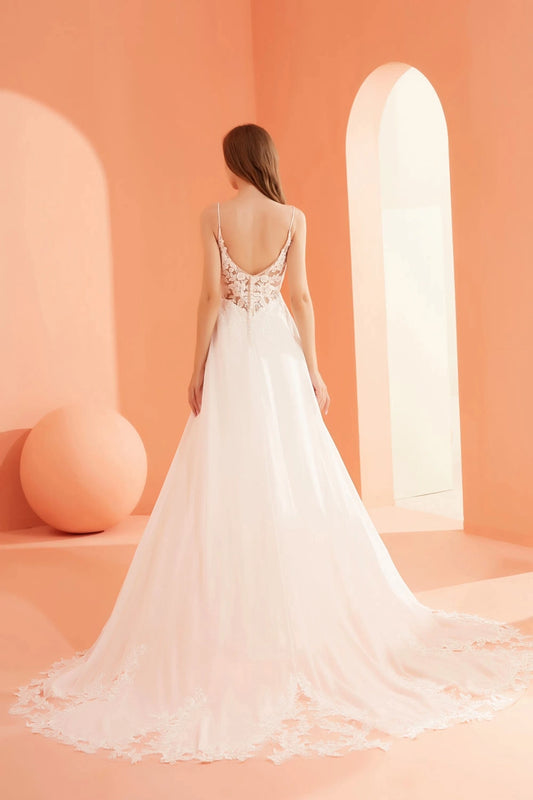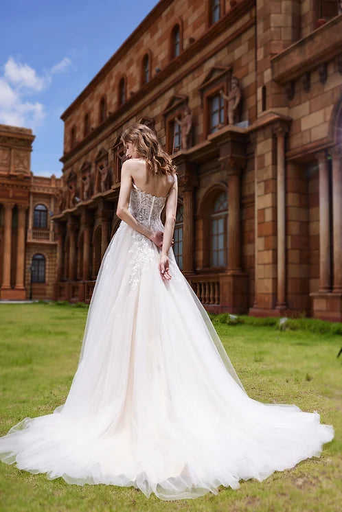 Intricate Floral Applique A-Line Tulle Wedding Dress
