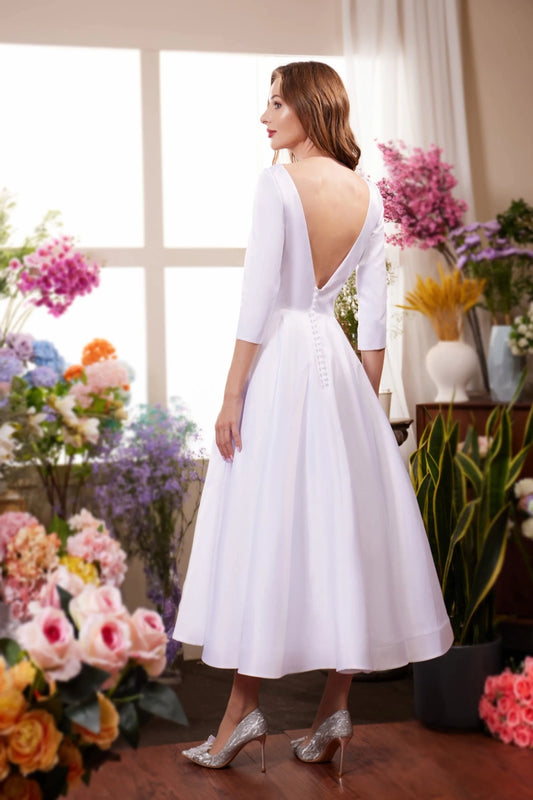 Beaded A-Line Wedding Dress With Long Sleeves