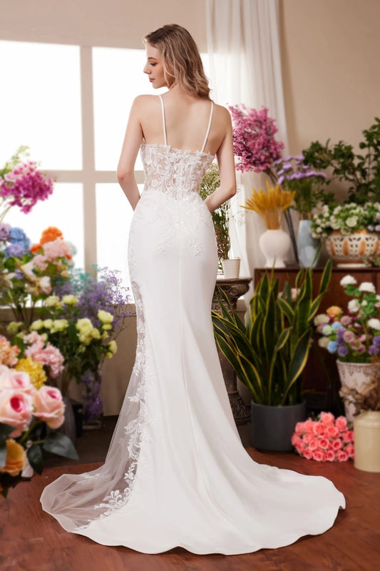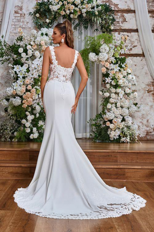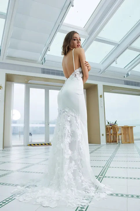 Cut-Out Back Embroidered Mesh Mermaid Wedding Gown