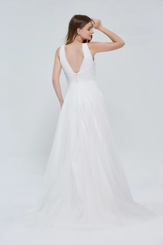 Mesh A-Line Long Dress Wedding Gown with Jewels